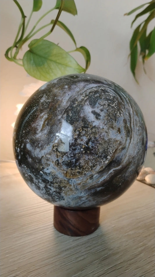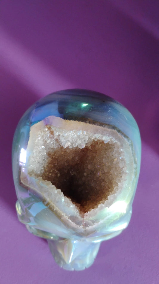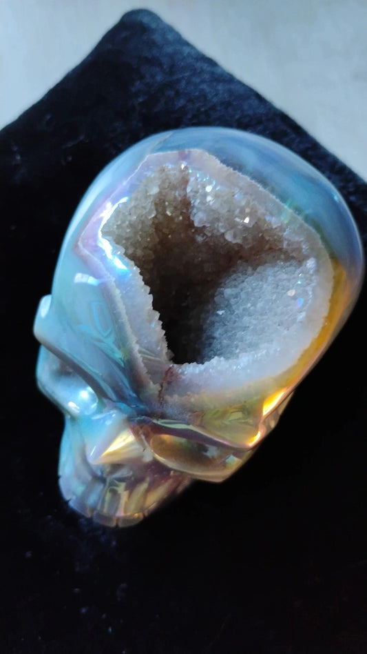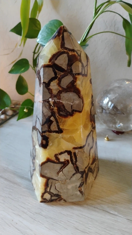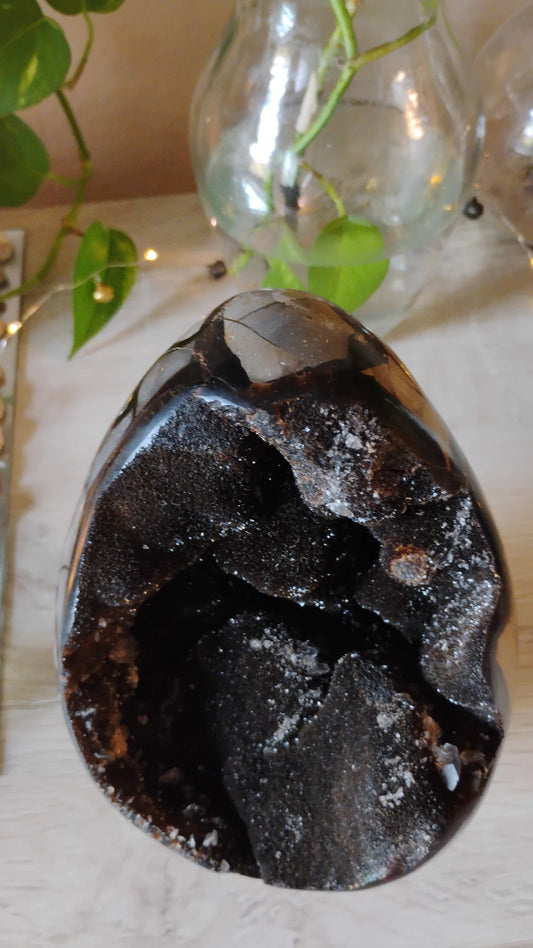 Large Septarian Dragon Egg Geode with clear Quartz Druzy